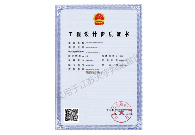 建筑行業(建筑工程、人防工程)甲級資質證書;風景園林工程設計專項乙級資質證書